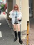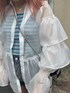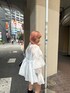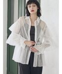 ボリューム感たっぷりのシアーシャツを主役にしたコーデ♡光沢感があり夏でも涼しげに着用できます!360°フリルが目立ちどこから見ても可愛いです♡158センチでお尻までしっかり隠れるチュニック丈なのでショートボトムスとの合わせがスッキリ見えておすすめです!