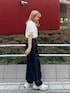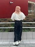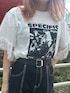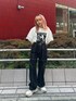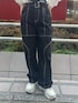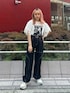 【トップス】Tシャツにチュールがドッキングされたリメイク風のロックTシャツ♡jouetieらしいグランジプリントで1枚で存在感抜群のアイテムです!袖レースがポイントになるのでベーシックなボトムス合わせでも映えるデザイン! 【ボトムス】カラーステッチがポイントのパンツ。シルエットが綺麗でウエストもゴムなので楽に着用して頂けます!158センチ前後でシルエット綺麗に着用したい方はSサイズおすすめです!