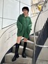 カーディガンは158cmでお尻すっぽり隠れるズルズルっとしたサイズ感。ロングブーツ合わせで一枚で着用するのがオススメです♡