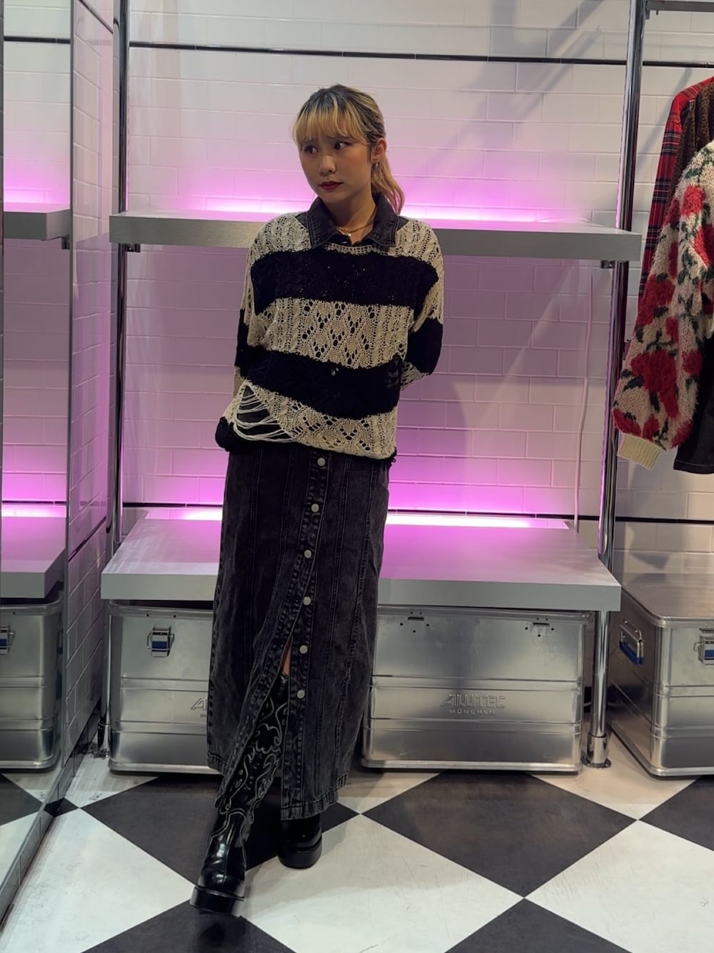 KANON(jouetie)のニット/セーター「ケーブルグランジニット【ダメージ/ボーダー】」を使ったコーディネート