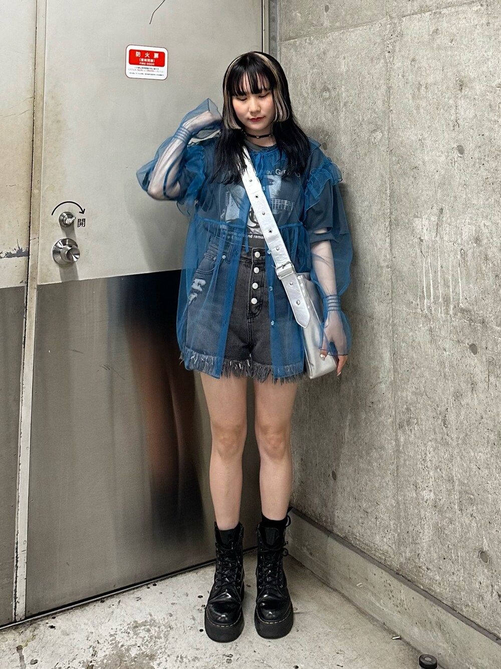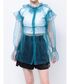 いつものコーデに羽織るだけで華やかになるシアーブラウス♡パキッとしたブルーはフリルデザインも甘くなり過ぎず着用できます💙158cmでお尻かかるゆったりサイズです!