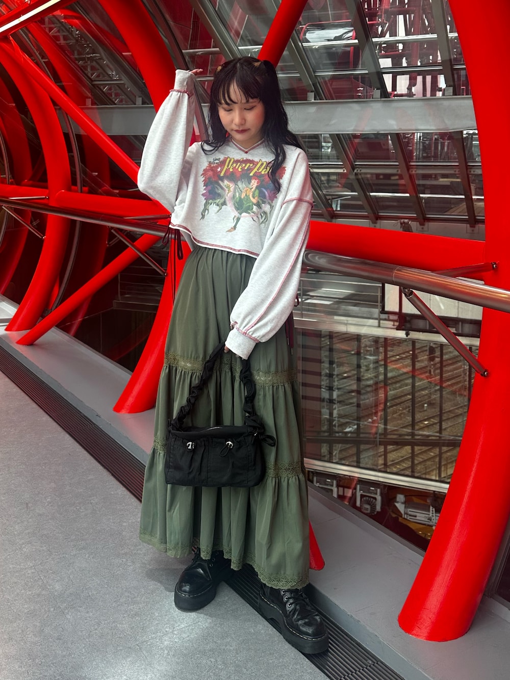 【トップス】jouetieからディズニーコレクションが登場💫 「ピーター・パン」プリントが可愛いプルオーバーです🧚カラーステッチデザインがjouetieらしいポイントです! 【スカート 】切り替えがレースデザインになっているロングスカート ✨トレンドもバッチリ抑えつつ甘く見えすぎないので色々な系統にハマるアイテムです!ハイウエストでシルエットデザインが綺麗に決まります!💞 【バッグ】ドローコードで長さが変えられるbag♡ショルダーでもハンドでもどちらでも可愛く使えます!コンパクトで軽く持ち運び楽にしていただけます!