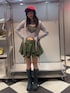 【トップス】JOJO×jouetieコラボのトップス♡フロントのキャッチーなデザインが目を惹くアイテムです!ステッチやガーターデザインが1枚でオシャレ見えするポイント🌟伸縮性もあり着心地◎【スカート】ハトメベルトがエッジを効かせてくれるjouetieらしいスカート♡甘くなり過ぎずスカートを履きたい方にオススメです!ミニスカですが、インパンが入ってるので安心して着用できます💞 【ブーツ】今季注目のエンジニアブーツ❣️ヴィンテージライクな風合いがポイントです!ゆとりがあり履きやすいので普段24センチのシューズ履く方にはMサイズがおすすめです!🎶 【キャップ】ヴィンテージライクなロゴ刺繍と、コーデュロイ素材が可愛いキャップ❤️ 色味が沈みがちな秋冬スタイリングの差し色に大活躍するアイテムです!