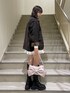 【アウター】オーバーサイズのルーズGジャン襟がレザーになってるのがカワイイです!メンズライクなデザインなのでカジュアル〜ガーリーまでインナーやボトム次第で雰囲気変えて使えます★ 【シャツ】前立て、裾に沢山あしらったレースがポイントのチュニックシャツ♡158cmでお尻しっかり隠れるのでミニワンピ風に着用するのが可愛いです⭐︎シャツ素材なので甘くなり過ぎずに着用でき、小物やアウター次第で色々な系統で着回していただけます🎶 【ブーツ】jouetie 定番厚底レースアップブーツ♥ストレッチが効いた素材で柔らかく履き心地抜群です!ミニボトムスと合わせるとコーディネートが締まり、すっきり見えるマストバイアイテムです!♪♪24cmでLサイズ着用 【バッグ】大きなリボンデザインでコーデのポイントになるハンドバッグ🎀ハトメで甘辛デザインがjouetieらしいポイント🎶深めのマチなのでお荷物もしっかり入ります!