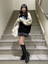 【ニット】158cmでヒップ隠れるゆったりサイズ✨袖にもデザインが入っているので、どこから見ても可愛いニットです🎶厚みがあるニット生地ですが裾にリブが入っているのでスッキリ見えも◎ 【ワンピース】大人気のバルーンワンピース🎈ふわっとしたシルエットで体のライン拾わずに着用していただけます!グリーンチェックは明るすぎず、甘く見えすぎないのでカジュアルコーデが好きな方にもおすすめです! 【バッグ】ふわふわなファーとヴィンテージライクな金具デザインがポイントのバッグ👜ジップ付きなので閉めれるのが◎フロントのポケットも大容量でお荷物沢山入れていただけます! 【ブーツ】 jouetie 定番厚底レースアップブーツ♥ストレッチが効いた素材で柔らかく履き心地抜群です!ミニボトムスと合わせるとコーディネートが締まり、すっきり見えるマストバイアイテムです!♪♪24cmでLサイズ着用しております!