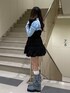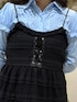 【シャツ】シャーリングデザインが目を惹くブラウス♥体に程よくフィットするタイトめなサイズ感です!襟元にラインストーンロゴがありレイヤードコーデでも可愛く他と差をつけて使っていただけます! 【ワンピース】フリルのボリューム感が可愛いワンピ♥スカート部分にパニエが仕込まれており形がふわっと広がって可愛いワンピースです♥アジャスター付きなので長さもお好みで調節できます!