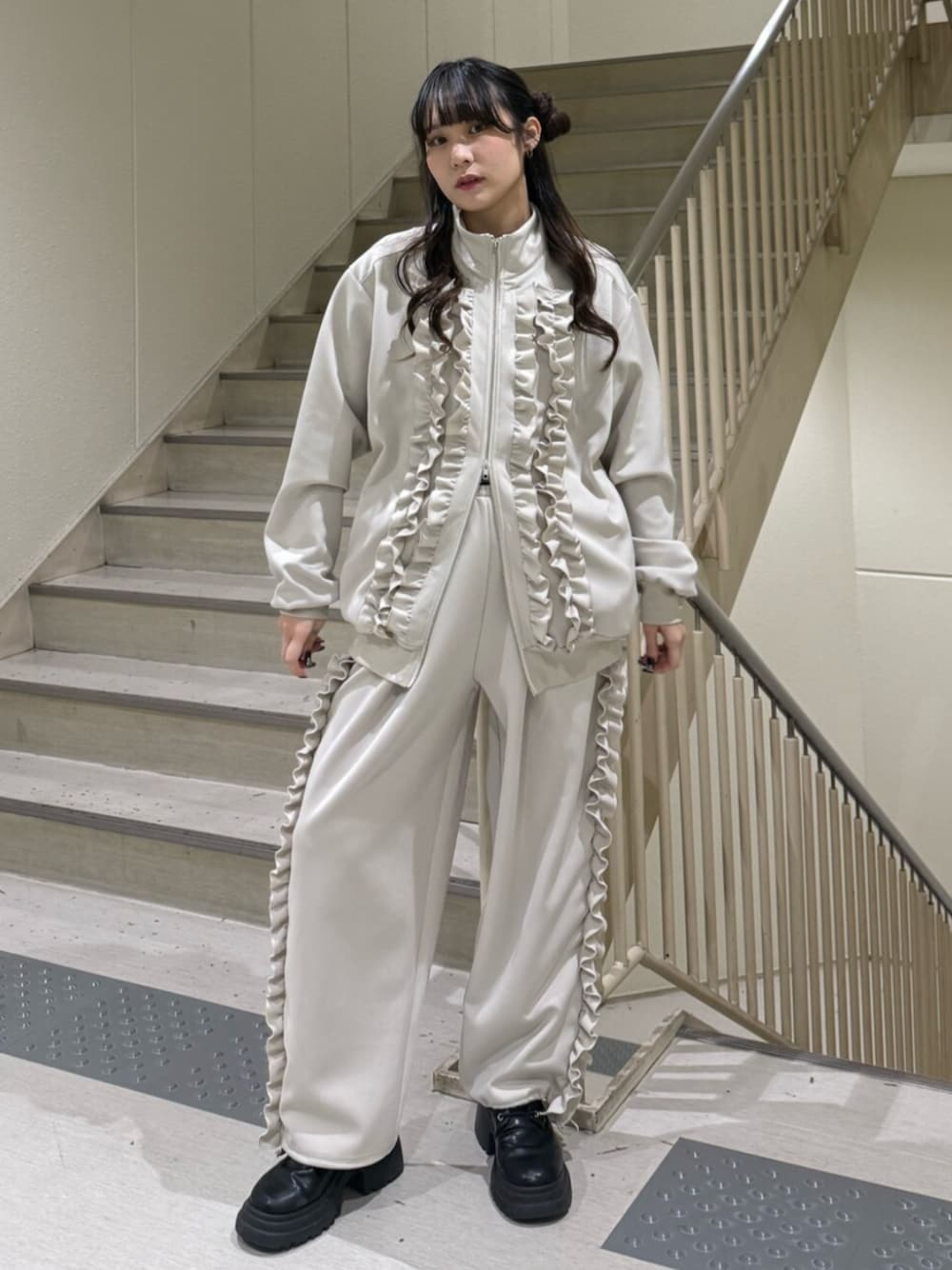KANON(jouetie)のジャージ「ルーズフリルトラックジャケット【セットアップ対応】」を使ったコーディネート