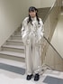 【トップス】フリルデザインがポイントのトラックジャケット♡オーバーサイズで158cmでヒップ隠れる丈感です!つるっとした素材で着心地抜群◎スポーティーになりすぎないので合わせるボトムス次第で多系統のコーデで活躍すること間違いなしです⭐︎ 【パンツ】トップスとセットアップ対応のパンツ⭐︎158cmで厚底でなくてもぎりぎり地面擦れない丈感です!裾にドローコードがついており絞れるので低身長さんも丈感心配せずに着用していただけます!