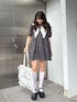 【ワンピース】大きな襟がポイントのミニワンピース♡バックスタイルもセーラーカラーで抜かりないです✨小顔効果抜群のワンピースです♡Aラインにふわっと広がるシルエットでスタイルもキレイに見せてくれます⭐︎ 【バッグ】レース×リボンが可愛いトートバッグ🩷A 4サイズすっぽり入るので推し活用でうちわなども入れて使用していただけます!