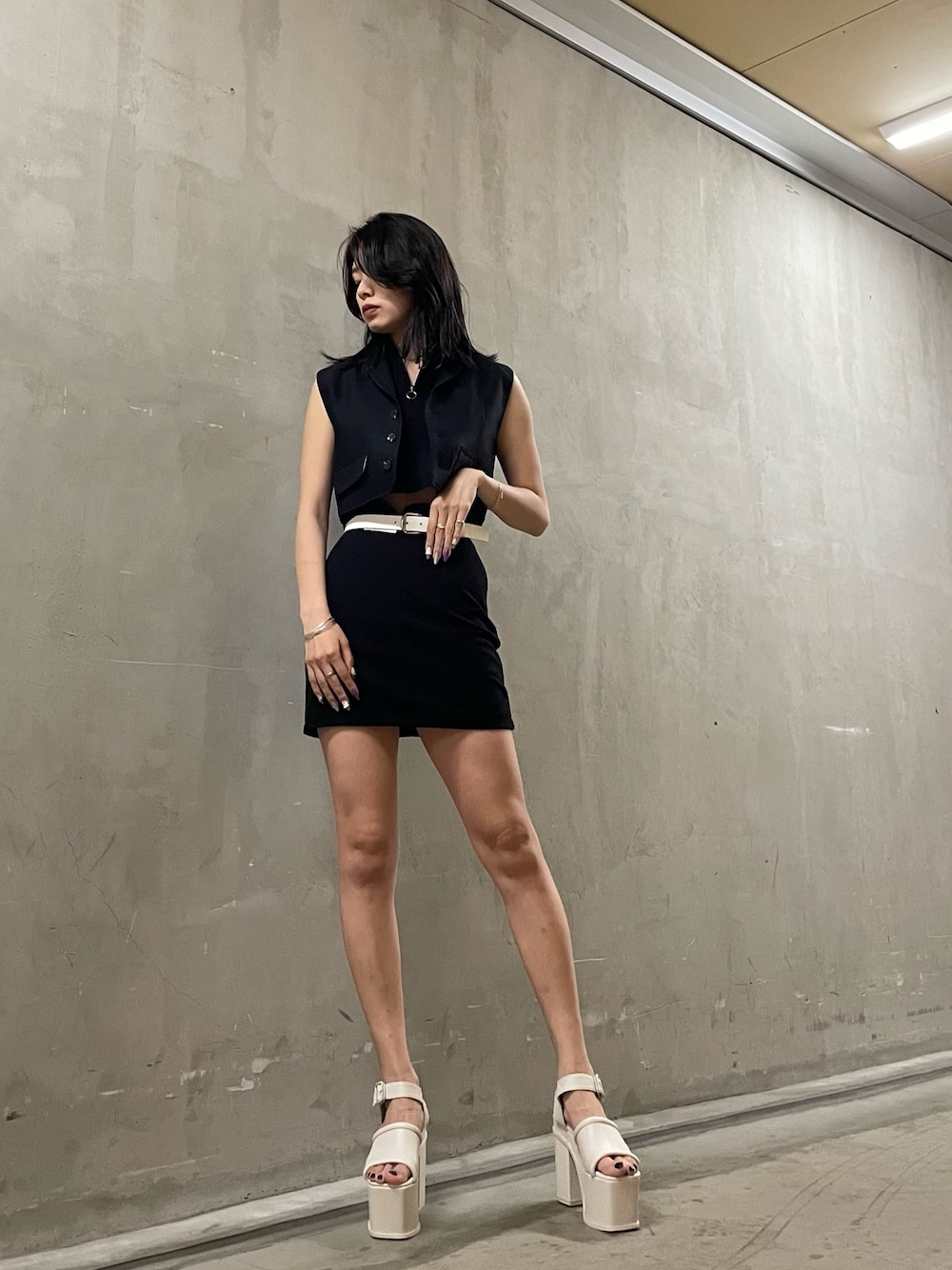 菅谷レイナ(EMODA)のベスト「クロップドスーツベスト」を使ったコーディネート