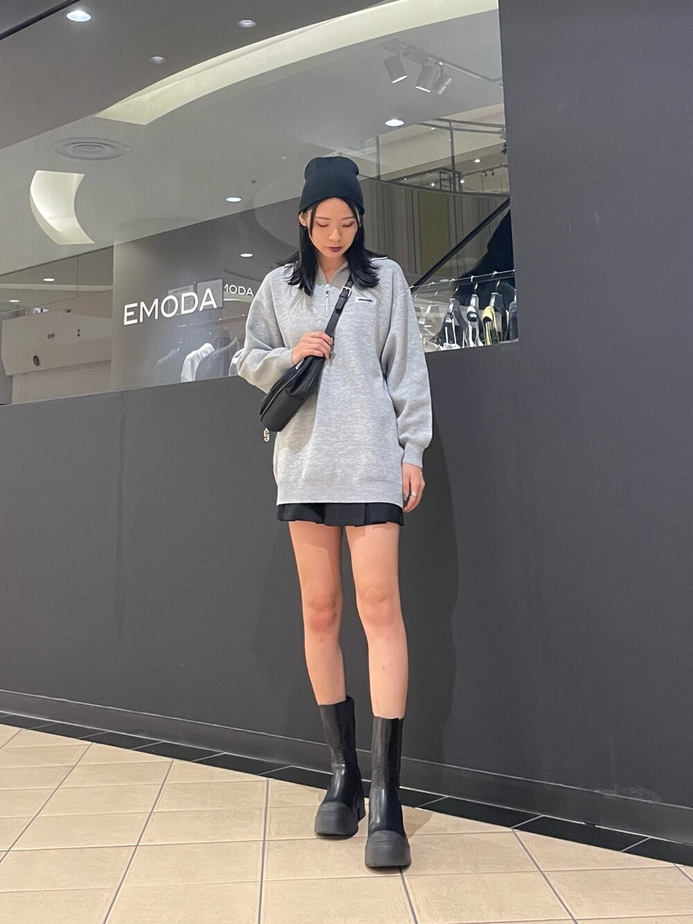 秋のトレンドコーデ🍁 トレンドのビーニー・ハーフジップ・プリーツスカートを使ったこのコーデは男性ウケも女性ウケも間違いなしです🤭❤️🔥 ~ワンピース~ 身長168cmでおしりが隠れる丈感です! ミニ丈のスカートやショートパンツと合わせてワンピースとして着るのも勿論ですが、高身長さんはオーバーサイズのスウェットとして着用して頂くのもオススメです✨️ 生地感はもちっとしていて、分厚くないので着心地が良く、今から冬まで幅広く着用して頂けます!!! ~スカート~ 168cmでSサイズ着用 ワンピースの下からチラ見えするプリーツが可愛い🥰 ローウエストのスカートですが、ベルトを通して頂くとハイウエストでも着用出来ます⭕️ ~ブーツ~ 25.5cmでLサイズ着用 毎年人気のサイドゴアブーツ❤️🔥 軽くて安定感があるので歩きやすい! しっかり厚底で脚を盛ってくれる! 厚底初心者さんにもオススメのブーツです✨️