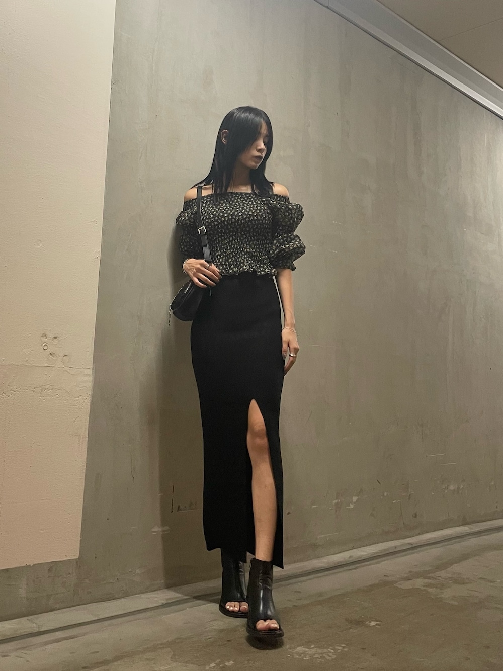 秋先取りコーデ🍁 女性らしいコーディネートと程よい肌見せがポイント!!! ~トップス~ 腕の部分がシアー素材になっていて程よい肌見せが女性らしさをアップしてくれます♡ オフショルにしなくても2weyで着られるので着回し抜群です! ウエスト部分はゴムになっているので伸縮性がありウエストを細見えできちゃいます!! ~スカート~ 私の大好きな前スリットのリブスカート♥️ 裏地が付いてるので、ショーツラインが見える心配がなく履いて頂けます🥺 フリーサイズですが、ウエストゴムなので伸縮性もあり、ローウエスでもハイウエストでも履けちゃいます!!! ~ブーツ~ リアルバイの超オススメブーツ!!! つま先が開いているのでどんなコーディネートにも合わせるだけで抜け感を作ることができ、オシャレ度アップ間違いなし👍 ヒール高すぎないので疲れにくく履きやすいです🥺 25.5cmでLサイズ着用しております!