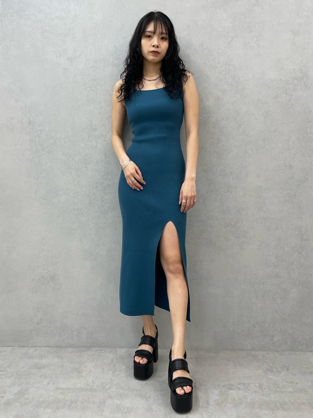 菅谷レイナ(EMODA)のワンピース「リブスリットマキシニットワンピース」を使ったコーディネート