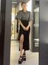菅谷レイナ(EMODA)のワンピース「リブスリットマキシニットワンピース」を使ったコーディネート