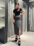 大人カジュアルコーデ🖤💭 ~トップス〜 Tシャツ1番人気🏆 おへそ隠れるか隠れないかくらいの丈感でどんなボトムスとも合わせやすい⭕️ タイトめのシルエットですが、ピタッとしすぎないので細見え効果も抜群✨️ 〜スカート〜 ふわふわな素材を使用しているため肌触り・着心地抜群❤️🔥 着用しているグレーのカラーにはラメ糸が使用されているため、キラキラ感が可愛い🥰 中地が付いているので、ショーツのラインが透けにくく安心🥺 好きな位置にスリットをもってきて着用することが出来るので着回しも抜群🤩 〜サンダル〜 25.5cmでLサイズ着用 スエード素材が高級感と女性らしさアップ❤️🔥 傾斜が少ないので疲れにくく歩きやすい⭕️ 今から秋まで使える万能サンダル🤩