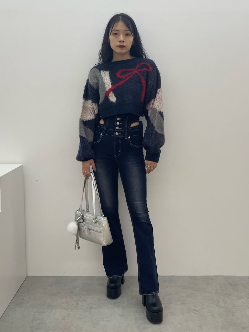 大人気‼️予約殺到のリボンニット🎀 ~トップス~ 今期トレンドのリボンが前後に施されています❤️🔥 ゆったりしているので着やすく、ショート丈なのでスタイル🆙効果も期待できます✨️ 〜デニム〜 168cmでSサイズ着用 高身長さんは丈でSサイズがオススメ‼️ 伸縮性抜群で履きやすい⭕️ 前ももの加工が脚を立体的に見せてくれるので細見え効果も抜群✨️ ウエスト部分のさり気ない肌見せが、抜け感を作ってくれてウエストも細見え🤩 〜ブーツ〜 25.5cmでLサイズ着用 毎年大人気のサイドゴアブーツ🏆 傾斜が少ないため安定感があり、歩きやすさ抜群❤️🔥 軽いので疲れにくいのもポイント✨️