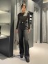 大人ブラックコーデ🖤💭 ~トップス~ リアルバイトップス‼️ 上品なラメと透けすぎないシースルーが高見えするオシャレアイテム✨️ 1枚でトップスとして着ても、インナーとして着ても使えるので着回し抜群🤩 〜デニム〜 168cmでMサイズ着用 丈が長めなので高身長さんにとってもオススメ✨️ バックデザインが可愛いワイドデニム❤️🔥 ワイドすぎないストレートめのシルエットが細見え効果抜群🤩 ~ブーツ~ 25.5cmでLサイズ着用 毎年大人気のサイドゴアブーツ🏆 ヒールが低いのと、傾斜がないため歩きやすさ抜群✨️ 軽いので疲れにくいのもポイント❤️🔥 ~バッグ〜 スタッフ人気No. 1バッグ🏆 マチが広いので小さいのに大容量で使いやすさ抜群⭕️ ヴィンテージ加工がポイントになって可愛いです❤️🔥
