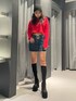 差し色❤️コーデ💭 今期トレンドカラーの赤‼️を使って今期らしいスタイリングにしてます😍 ~トップス~ シンプルなデザインで万能なロンT‼️ ボトムスはなにを合わせても間違いなので着回し抜群🤩 胸のハートモチーフのロゴがポイントで可愛い❤️🔥 ゆとりのあるサイズ感で着やすいのもポイント✨️ ~スカート~ 168cmでMサイズ着用 かなり丈がミニ丈なので高身長さんはMサイズがオススメ‼️ ローウエストで履くスカートですが、ベルトをきつめに締めてハイウエストでも着用可能⭕️ インナーショーツ付きで安心❤️🔥 ~ブーツ〜 毎年超人気の膝下-5キロブーツ✨️ 25.5cmでLサイズ着用 伸縮性・安定感抜群で履きやすい⭕️ どんなコーデにも合わせやすい🤩 テーマパークでも一日中疲れずに歩けました❤️🔥