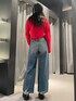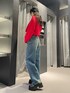 トレンドの赤を取り入れたカジュアルコーデ❤️ ~トップス~ シンプルなデザインで万能なロンT‼️ ボトムスはなにを合わせても間違いなので着回しも抜群✨️ 胸のハートモチーフのロゴがポイントで可愛い❤️🔥 ゆとりのあるサイズ感で着やすいのもポイント🤩 ~デニム〜 168cmでSサイズ着用 ワイドでクラッシュのデザインがポイント‼️ 丈をダボって履いた方が可愛いデニムなので、高身長さんは丈でMサイズがオススメ✨️ ウエストが緩めになっているためローライズ風に履いても可愛いです❤️🔥 ~ブーツ~ 25.5cmでLサイズ着用 毎年大人気‼️サイドゴアブーツ🏆 ヒールが低いのと、傾斜がないため歩きやすさ抜群🤩 軽いので疲れにくいのもポイント✨️