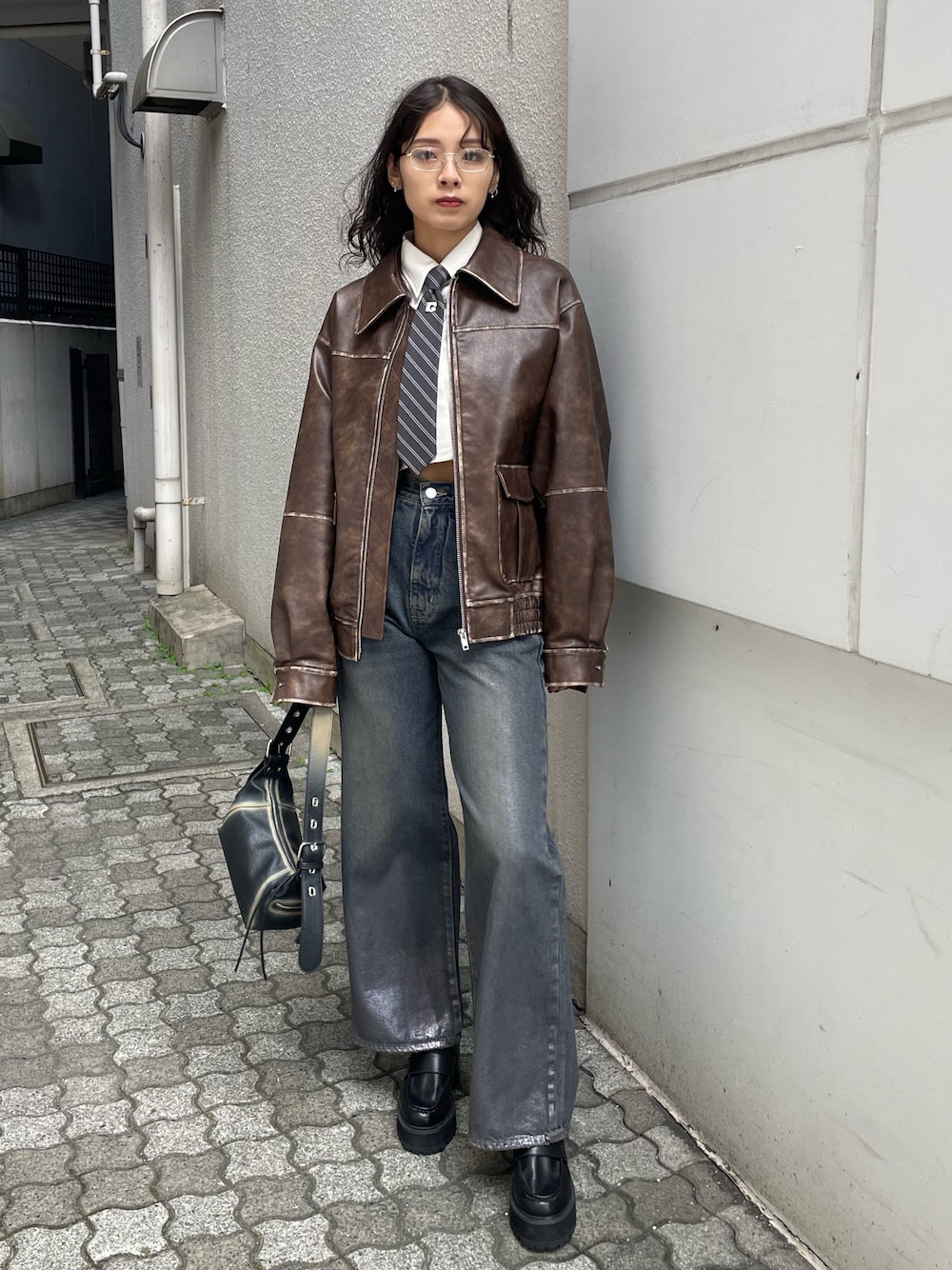 トレンドコーデ💙 ~ブルゾン~ オーバーサイズなので、168cmでもヒップ3分の2が隠れる丈感で、高身長さんにもオススメ✨️ 袖口が広めに作られていて、分厚めのニットなど中にたくさん着込めるため、長く着用できます⭕️ ヴィンテージ加工がコーデのポイントになり可愛い❤️🔥 〜シャツ〜 ネクタイは取り外し可能で2wayで着用出来るので着回し抜群✨️ ゆとりがあるサイズ感なので着やすい⭕️ 短すぎないショート丈のため、高身長さんにもオススメ‼️ 1枚でトレンドを抑えたモードな雰囲気に😍 ~デニム~ 168cmでSサイズ着用 高身長さんは丈でMサイズがオススメ✨ グラデーションと光沢のデザインが他になく、被らないデザインで可愛い😍 自然光が当たるとキラキラのラメのように光って見えるのがポイント🤩 太すぎないストレートめなシルエットが細見え✨️ ~シューズ〜 25.5cmでLサイズ着用 傾斜が少ないので安定感抜群で歩きやすい⭕️ 厚底も高すぎないので、厚底初心者さんや高身長の方でも履きやすい‼️ ベルトデザインが他になく、ポイントになって可愛い❤️🔥 〜バッグ〜 スタッフ人気No. 1バッグ🏆 マチが広いので小さいのに大容量で使いやすさ抜群✨️ ヴィンテージ加工がポイントになって可愛い❤️🔥