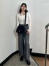 モードカジュアルコーデ🖤 ~トップス~ 首元のチョーカーは取り外し可能⭕️ 私はリボン結びにしてトレンド感を出して着用してます✨️ ウエストのホックデザインが細見え効果抜群😍 スクエアネックでデコルテが綺麗に見えるので小顔効果も期待出来ます😳 ~デニム~ 168cmでSサイズ着用 高身長さんは丈でMサイズがオススメ‼️ グラデーションと光沢のデザインが他になく、被らないデザインで可愛い❤️🔥 自然光が当たるとキラキラのラメのように光って見えるのがポイント😍 太すぎないストレートめなシルエットが細見え効果抜群✨️ 〜シューズ〜 25.5cmでLサイズ着用 傾斜が少ないので安定感抜群で歩きやすい⭕️ 厚底も高すぎないので、厚底初心者さんや高身長の方でも履きやすい‼️ ベルトデザインが他になく、ポイントになって可愛い❤️🔥 〜バッグ〜 ショルダーとハンドバッグで2wayで使えます‼️ 大容量で使いやすさ抜群🤩 もふもふ素材がポイントになって可愛い😍 ※こちらの商品はWeb限定品となっております🙇♂️