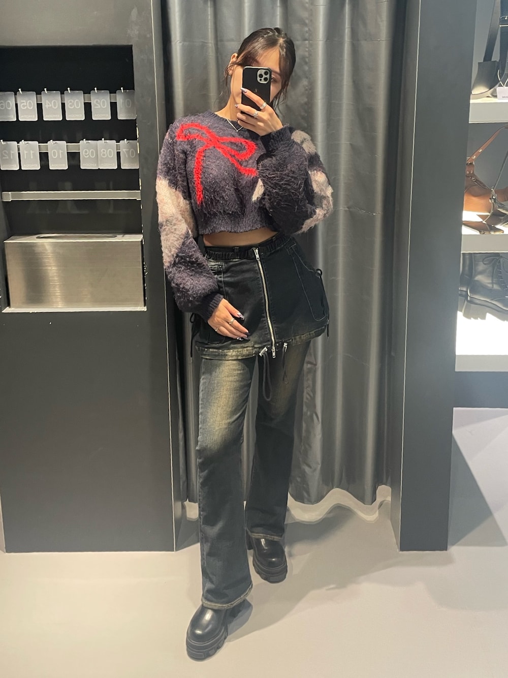 菅谷レイナ(EMODA)のニット/セーター「ショートルーズジャガードニット」を使ったコーディネート