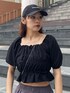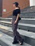 ~トップス~ オフショルにしてもしなくても2wayで着用可能 オフショルにする時もゴムになっているのでずり落ちることもなく着やすい ウエスト部分のギャザー効果でウエストにメリハリが付き細見えします 二の腕カバーやデコルテがスッキリ見える着痩せトップスです ~パンツ~ 身長168cmで踝が隠れるくらいの丈感 ウエストがゴムになっているので履きやすいのと丈を調節することができます 光沢のあるカラーとギャザーデザインがナイロンパンツでもモードでキレイめな印象になりオススメ ~サンダル~ 25.5cmでLサイズ着用 とても軽くて疲れにくくオススメ 厚底ですがスニーカータイプなので傾斜がなく安定感抜群で歩きやすい ジップデザインで脱ぎ履きしやすいのもオススメ 〜バッグ〜 チェーンが付いているので、ハンドバッグとショルダーバッグの2wayで使用可能 光沢のあるナイロン素材がコーデのポイントになり可愛い 小さめのサイズですがマチがあるので使いやすいです