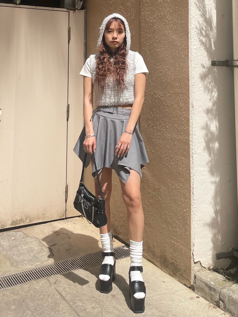 ~トップス~ 身長168cmでおへそ上3cmほどの丈感 短すぎない丈感で高身長さんにもオススメ シャギー素材で肌触りもよく、伸縮性も抜群で着やすいトレンドのフード付きデザインがポイント ~インナー~ 身長168cmでおへそ上3cm程の丈感 タイトすぎないサイズ感で着やすい シンプルなデザインで着回し抜群 ショート丈なのでハイウエストのボトムス合わせでスタイルアップ効果抜群 ~スカート~ 168cmでMサイズ着用 高身長さんは丈でMサイズがオススメ 骨ストさん優勝シルエット 腰周りはスッキリ見えつつ、気になる太もも周りを長さが異なる裾のデザインでカバーしてくれるのでオススメ インナーショーツ付きで安心 1枚でトレンド感のあるコーデに仕上がります ~サンダル〜 25.5cmでLサイズ着用 厚底なのに傾斜がないため安定感抜群で履きやすい 重すぎないため疲れにくく、長時間着用できます ソックス合わせだと夏だけでなく、春や秋も使えるので着回し抜群 ~バッグ〜 付属チェーンとスタッズが映える人気バッグ シンプルなのでどんなコーデにも合わせやすく、オールシーズン使えるのがオススメ マチがしっかりあるので、小型でも使いやすい