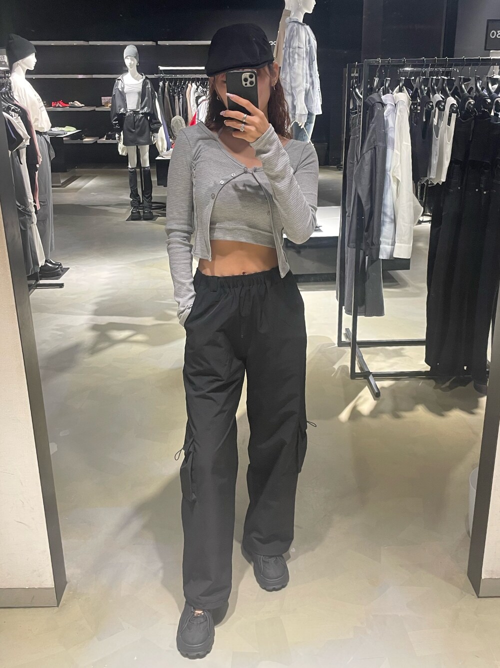 ~トップス〜 中にキャミソールが付いているツイントップス タイトすぎないサイズ感で着やすく、着痩せ効果も抜群 デコルテが開いているので小顔効果も期待出来ます バックも深めに開いていて、やり過ぎない肌見せが女性らしさアップ 〜パンツ〜 ウエストがゴムになっているのでラクチン 168cmでおへそ下で着用して、踝が隠れるくらいの丈感 長めになっているので高身長さんにもオススメ 裾にドロストが付いているので裾を絞って着用する事も可能 腰の辺りのポーチベルトは取り外し可能なので着回し抜群 ナイロン素材でサラサラしているので夏でもオススメ 〜サンダル〜 25.5cmでLサイズ着用 ゴム素材になっていて脱ぎ履きしやすく、ゆとりのあるサイズ感なので、足が大きめの方にもオススメ スニーカーディテールのデザインがモードカジュアルな雰囲気を演出してくれます ペタンコサンダルになってるので疲れる心配もなくオススメ