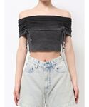 菅谷レイナ(EMODA)のTシャツ/カットソー「ギャザーオフショルダーリボントップ」を使ったコーディネート
