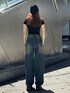 ~トップス~ トレンドのガーターベルト風のデザインがポイント シンプルなので合わせやすいですが、デザイン性があることで一気にオシャレなコーデが完成するのがオススメのポイント サラサラとした素材で伸縮性があり着やすい 〜デニム〜 身長168cmでSサイズ着用 丈が長めなので高身長さんにもオススメ リボンが大きくプリントされたトレンド感満載デニム ヴィンテージ感のある色味も今年っぽさがあり、他と被らない絶妙な色味でオススメ ワイド過ぎないストレートめなシルエットで、ハイウエストになっているのが美脚効果やスタイルアップ効果抜群 〜サンダル〜 25.5cmでLサイズ着用 柔らかいクッション素材なので履きやすさ抜群 高すぎない厚底と傾斜がないので安定感も抜群 シンプルだけど存在感のあるデザインでポイントにもなり、どんなコーデにも合わせやすいです