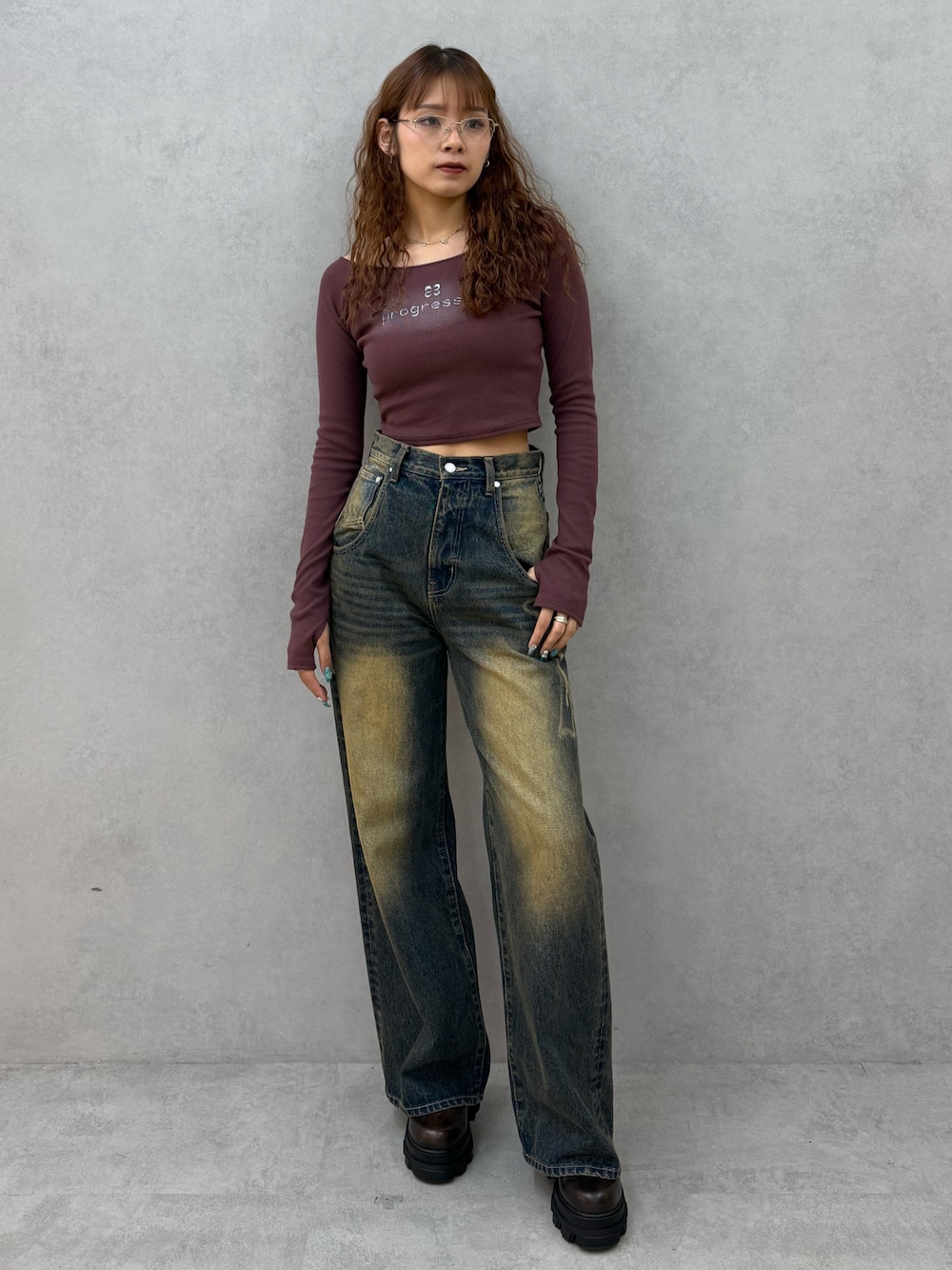 ~トップス~ 伸縮性抜群で着やすい 広めのネックは首元がスッキリと見えるので小顔効果抜群 オフショルダーとしても着用可能 袖口はサムホール付きで腕を長く綺麗に見せてくれます 〜デニム〜 身長168cmでSサイズ着用 丈が長めなので高身長さんにもオススメ リボンが大きくプリントされたトレンド感満載デニム ヴィンテージ感のある色味も今年っぽさがあり、他と被らない絶妙な色味でオススメ ワイド過ぎないストレートめなシルエットで、ハイウエストになっているのが、美脚効果やスタイルアップ効果抜群 ~シューズ〜 毎年大人気のサイドゴアブーツ 25.5cmでLサイズ着用 傾斜が少なく歩きやすいのがポイント どんなコーデにも合わせやすい万能ブーツです インヒールが入っているので美脚効果も抜群でヒールが高すぎないのが疲れにくくてオススメ
