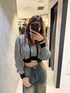 〜トップス〜 タンクトップとカーデニットがセットになってます 別々でも着られるので着回し抜群 スクエアネックがデコルテを綺麗に見せてくれます ノーカラーで千鳥柄のデザインが女性らしさをアップしてくれる1枚です ~デニム〜 身長168cmでSサイズ着用 丈が長めなので高身長さんにもオススメ リボンが大きくプリントされたトレンド感満載デニム ヴィンテージ感のある色味も今年っぽさがあり、他と被らない絶妙な色味でオススメ ワイド過ぎないストレートめなシルエットで、ハイウエストになっているのが、美脚効果やスタイルアップ効果抜群 ~シューズ〜 毎年大人気のサイドゴアブーツ 25.5cmでLサイズ着用 傾斜が少なく歩きやすいのがポイント どんなコーデにも合わせやすい万能ブーツです インヒールが入っているので美脚効果も抜群でヒールが高すぎないのが疲れにくくてオススメ