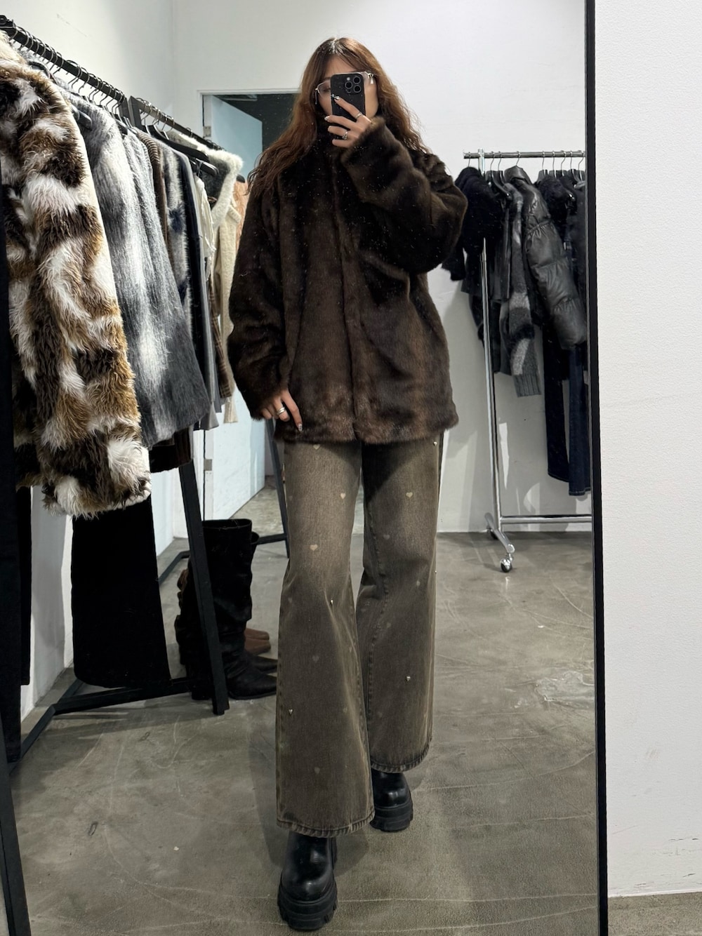 ~アウター〜 防寒性抜群コート 袖口にリブが付いてるので風通しも防いでくれます スタンドネックにもできるのでマフラー要らずで暖かい 身長168cmでヒップ3分の2が隠れる丈感で高身長さんにもオススメ 見た目に反して軽いので着やすいのも特徴 ~デニム〜 168cmでSサイズ着用 高身長さんは丈でMサイズがオススメ ドット柄のようなデザインでハートモチーフになってるのが可愛くてポイント ハイウエストで脚長効果抜群 ストレートめのシルエットで美脚効果も期待出来ます ~シューズ~ 毎年大人気のサイドゴアブーツ 25.5cmでLサイズ着用 傾斜が少なく歩きやすいのがポイント どんなコーデにも合わせやすい万能ブーツです インヒールが入っているので美脚効果も抜群 ヒールが高すぎないのが疲れにくくてオススメ