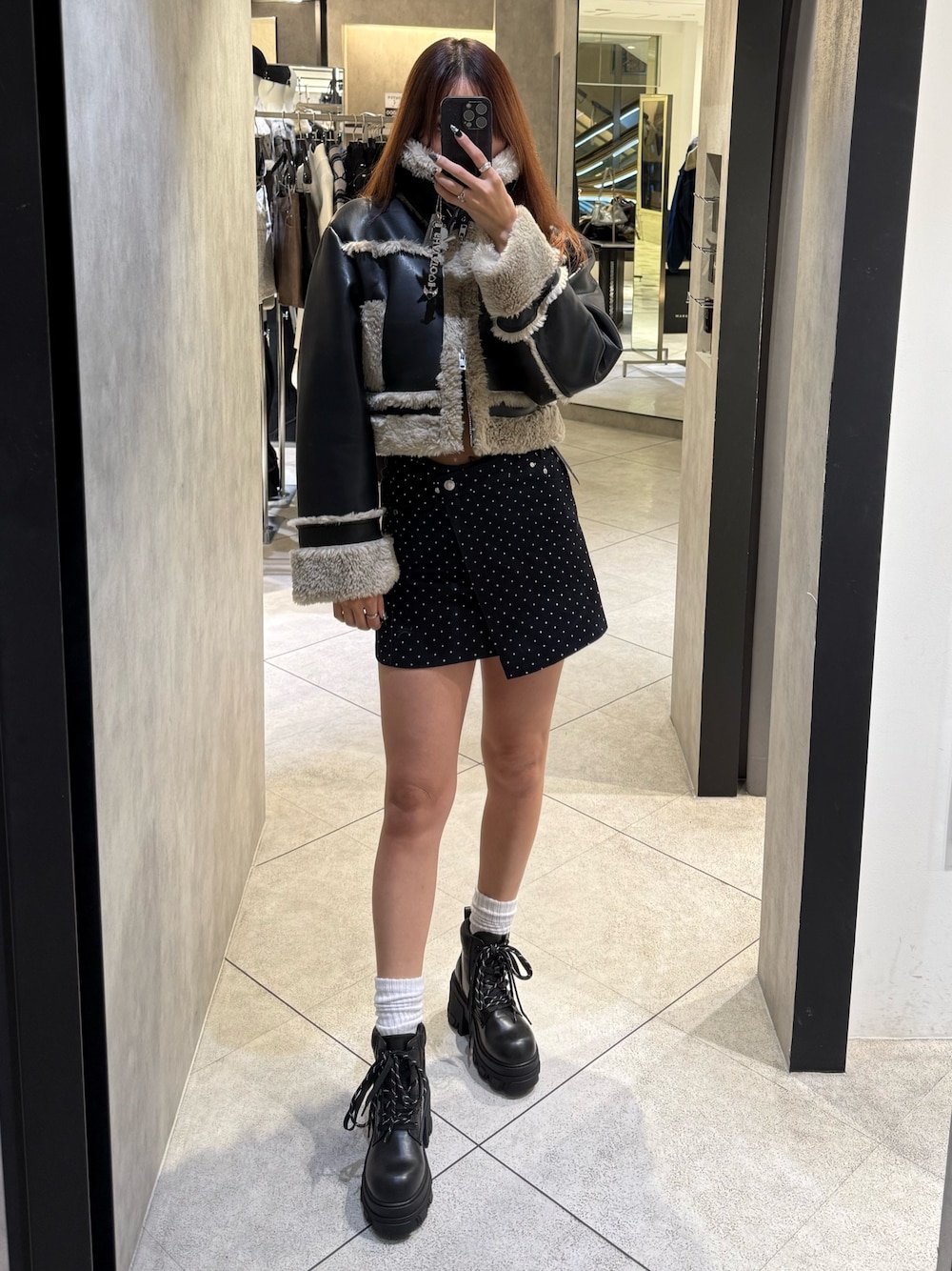 菅谷レイナ(EMODA)のブルゾン「ショートフェイクムートンブルゾン」を使ったコーディネート