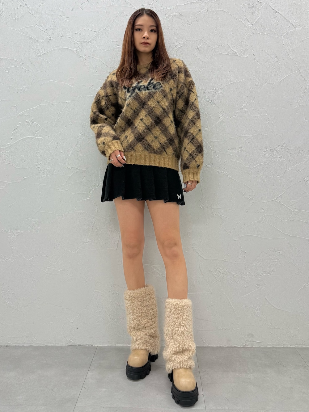 菅谷レイナ(EMODA)のニット/セーター「チェックロゴオーバーニット」を使ったコーディネート