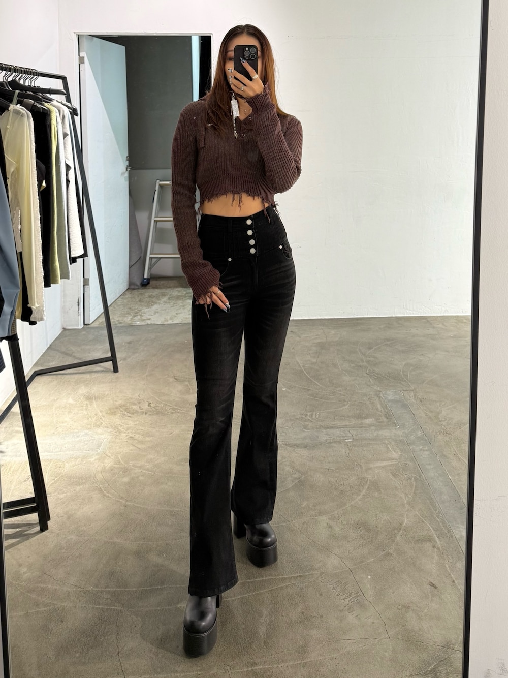 ~トップス~ 袖口と裾のダメージ加工とフードデザインになっているのが今季らしい1枚 タイトすぎないサイズ感で着やすい インナーでも1枚で着ても可愛いので着回し抜群 ~デニム〜 168cmでSサイズ着用 高身長さんは丈でSサイズ以降がオススメ 伸縮性抜群で履きやすく、ハイウエストで脚長効果抜群 後ろのポケットのリボンデザインが可愛くてポイント 〜ブーツ〜 25.5cmでLサイズ着用 毎年大人気のサイドゴア厚底ブーツ 厚底なのに傾斜が少ないので疲れにくく、ソールが太く作られているので安定感抜群で履きやすいのが特徴 シンプルなデザインで色々なコーデに合わせることが出来ます