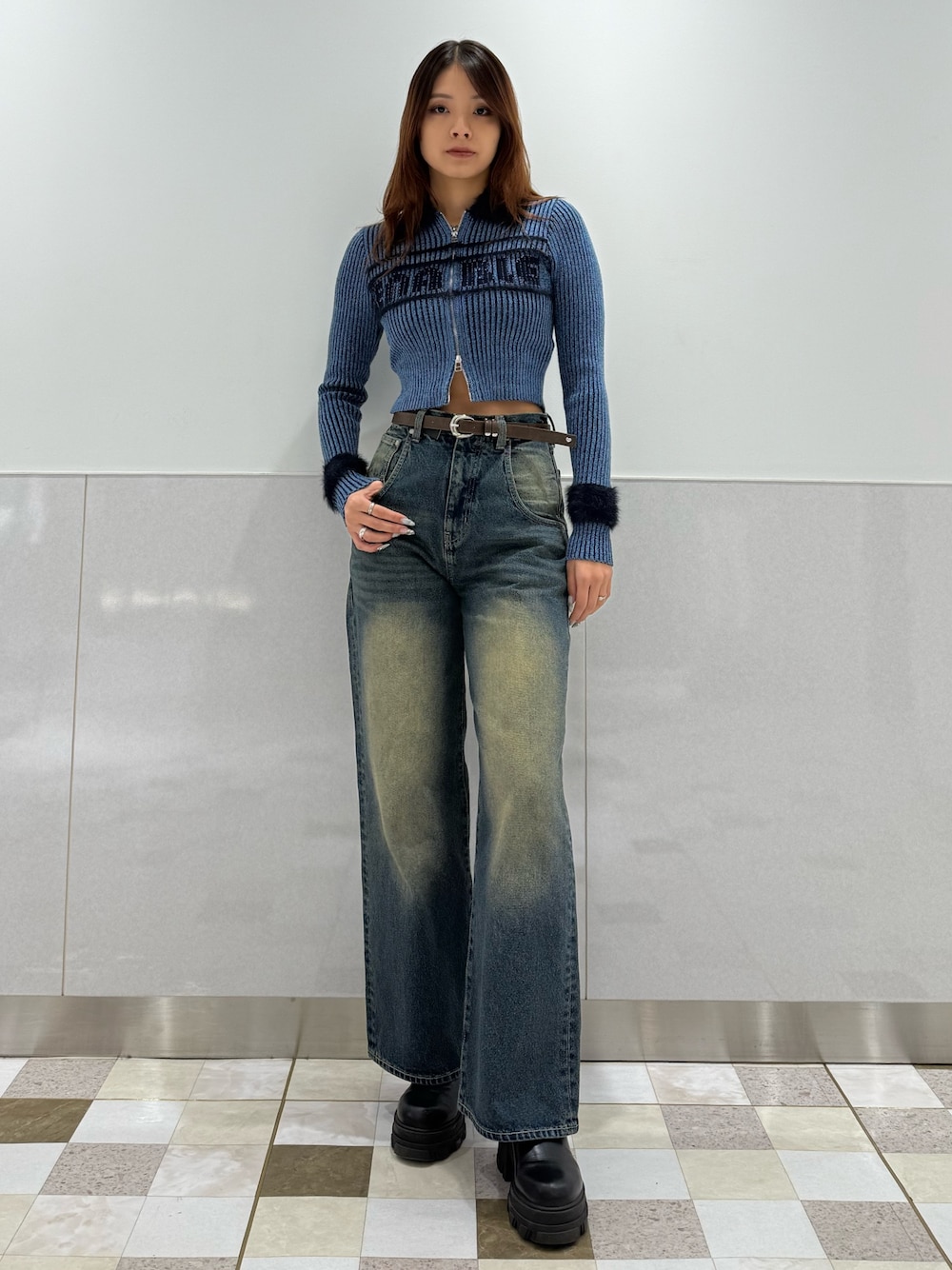 今期はブルー(ネイビー)×ブラウンのカラー合わせがトレンド💙🤎 ~トップス〜 シャギーロゴがポイントの1枚で映えるデザインニット タイトなサイズ感ですが、伸縮性があり着やすいのと、分厚めの生地なので、ボディーラインを拾いすぎないシルエットで細見えするのがポイント 〜デニム〜 168cmでSサイズ着用 高身長さんは丈でSサイズ以降がオススメ ヴィンテージ感のある珍しい色味がポイント バックデザインのスプレープリントのハートが目を引く 1枚 ストレートめのワイドデニムで太すぎず、細見え効果抜群です ~シューズ〜 毎年大人気のサイドゴアブーツ 25.5cmでLサイズ着用 傾斜が少なく歩きやすいのがポイント どんなコーデにも合わせやすい万能ブーツです インソールが入っているので美脚効果も抜群 ヒールが高すぎないのが疲れにくくてオススメ