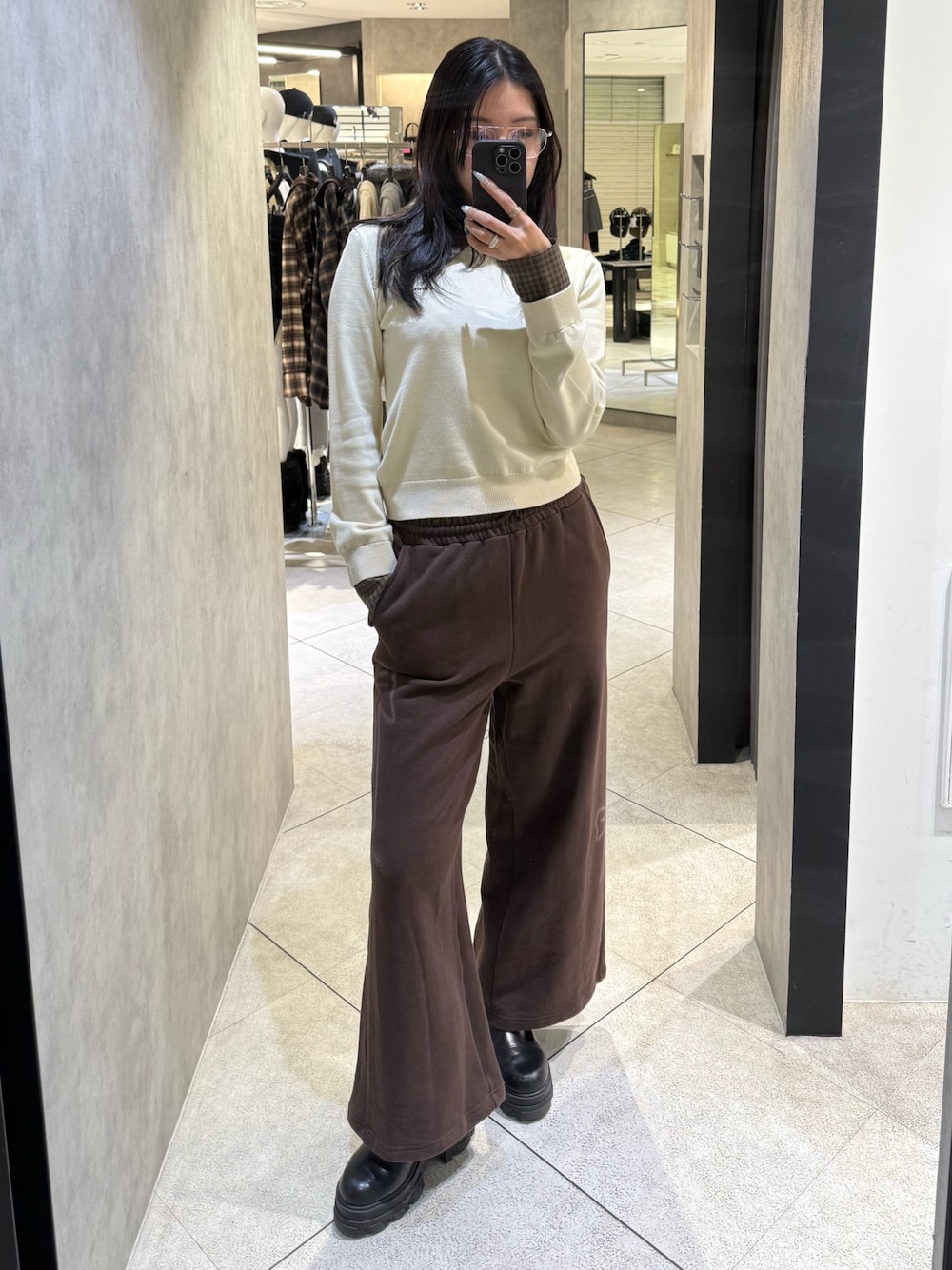 ~トップス〜 色んな着方ができる着回し抜群トップス チェック部分の襟と袖は取り外し可能 シンプルなニット単体でも着用可能 ジャストサイズでゆとりもあり着やすい ~スウェットパンツ〜 オールシーズン履けて着回しも抜群なスウェットパンツ スプレーアートのようなリボンモチーフがポイント ワイドシルエットですが、太すぎないシルエットで着痩せするのがオススメ 〜シューズ〜 毎年大人気のサイドゴアブーツ 25.5cmでLサイズ着用 傾斜が少なく歩きやすいのがポイント どんなコーデにも合わせやすい万能ブーツです インヒールが入っているので美脚効果も抜群 ヒールが高すぎないのが疲れにくくてオススメ