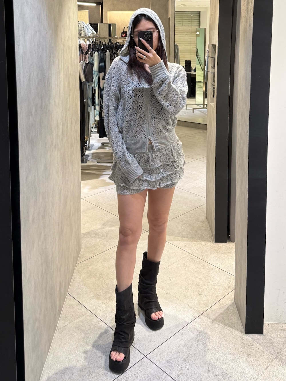 ~パーカー~ シアー素材が春夏らしくてオススメ ダブルジップなので丈調節可能 逆開して着用するのが可愛くてオススメ 夏の羽織りとしても使えるので長い期間着用できます ※インナーはタンクトップやキャミソール合わせがオススメです ~スカート~ 見た目はスカートですがショートパンツになっているのでどの身長の方でも安心して着用できます ウエストはゴムになっているので伸縮性抜群で履きやすいです キルティングデザインですが、シンプルなので単体でも着回し抜群です ~サンダル~ 25.5cmでLサイズ着用 厚底なのに傾斜がほとんどないので歩きやすさ抜群で疲れにくい 見た目以上に軽くて履きやすいのもオススメ 他店にはないデザインで、コーデの主役になるのがポイント