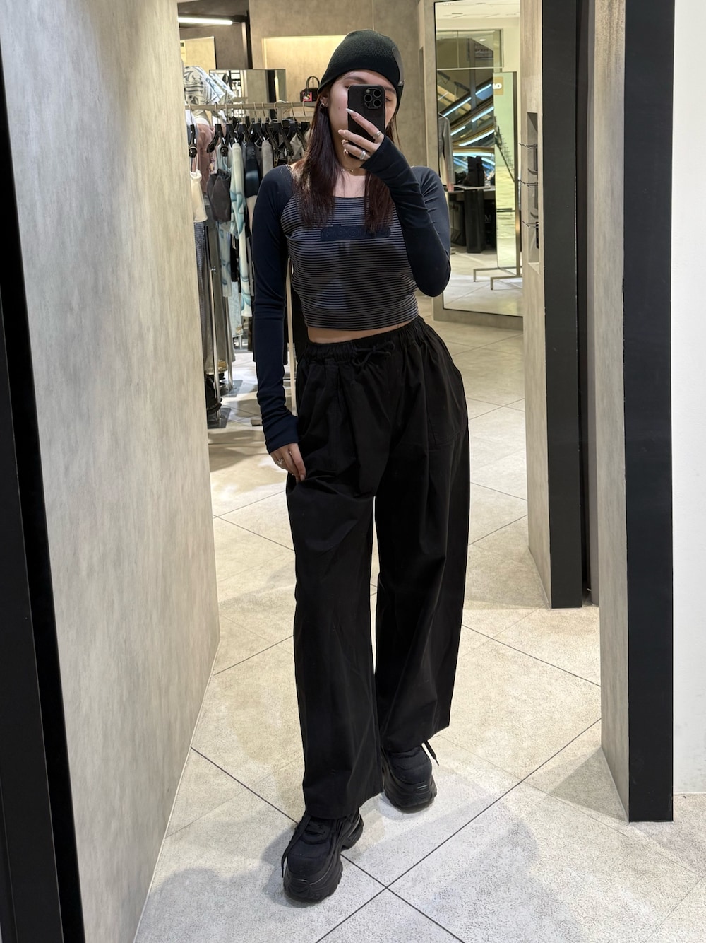 ~トップス~ シンプルなので着回し抜群 パッチロゴデザインがポイント アームホール付き 伸縮性があるので着やすい 首元が広めに作られているので、デコルテが綺麗に見えます ~パンツ~ ワイドなバルーンシルエットが特徴のパンツ サラサラとした生地感で夏まで履きやすい 丈が長めなので高身長さんにオススメ ウエストはゴムになっていて伸縮性抜群で履きやすい ~シューズ~ 25.5cmでLサイズ着用 厚底なのにとても軽くて疲れにくいのが最大のポイント! シンプルなデザインなので、どんなコーデにも合わせやすいのと、スニーカーなので一年中履けるのがオススメ!