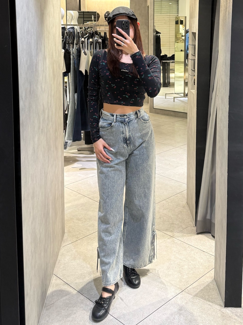 ~トップス~ トレンドのチェリー柄がポイントのトップス🍒 ネックが広めに作られているので、デコルテが綺麗にスッキリ見えます 伸縮性もあるので着やすく、着回しも抜群です 〜デニム〜 168cmでMサイズ着用 高身長さんは丈でMサイズがオススメ サイドレースアップデニムビスチェとセットアップ着用可能アイテム シンプルなので着回しも抜群 サイドのレースアップデザインがポイント 〜シューズ〜 デザイン性に優れており、コーデの主役になるヒールパンプス 25.5cmでLサイズ着用 ヒールが低めなので歩きやすく、疲れにくいパンツ合わせがイチオシです