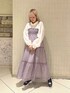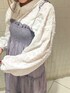 シアーなキャミワンピコーデ【トップス】立体的なお花フリルがフェミニンな印象のシャツ。シアー生地で涼しげですが少し肌寒い時期には羽織としてもお使いいただけます。長めな丈感でパンツとの相性も◎【ワンピース】胸元のシャーリング×ふわっと広がるボトム部分でメリハリのついたシルエットのキャミワンピース。シワにもなりにくい生地感でデイリーユースにお使いいただけます。裏地がしっかりついているのも嬉しいpointです。【シューズ】驚くほど軽量なベルクロスニーカーは長距離のおでかけ向き!着脱もらくちんで普段使いにぴったり。靴下を色物やレースの物にしてチラ見せするのがおすすめ!24.5cmでLサイズぴったりのサイズ感でした。