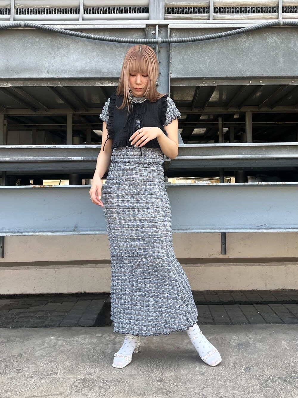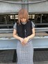 夏のユニークな大人コーデ【トップス】伸縮性のあるトップスは着心地◎なitem。少し体にフィットするサイズ感ですが、立体的な生地で体のラインを拾いすぎないデザインです。1枚でも、レイヤードしても使える夏の万能トップスです。【つけ襟】スクエア型が珍しいつけ襟はコーデのアクセントに!首周りがシンプルなアイテムに合わせるだけで、ぱっと華やかな印象に。サイドを、リボンで結べば、ズレる心配もありません。【ボトムス】ゆるいマーメイドシルエットですっきりした印象のスカート。ストレッチの効いた生地で履き心地抜群です。お揃いのトップスの他に、Tシャツやブラウスとも相性◎です。【シューズ】クリアソールが涼しげなミュールは可愛らしくもすっきり、大人な印象。ヒールは低めなので安定感も抜群で歩きやすさ◎靴下合わせもおすすめです!