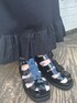 個性派ブラックコーデ【トップス】犬猫のデザインが個性的!存在感のあるシャツはコーデの主役になります◎1枚でトップスとして、羽織りとして夏にもお使いいただけるので、色々な合わせ方が楽しめます!【ボトムス】コットン生地のキャミスカートは長さによってスタイリングを変えられる万能な1枚。肩紐を短めに結んでキャミワンピースに、胸元にデザインのあるトップスと合わせる時は長めに結んでスカートとして◎ふわっと程よく広がり、甘すぎないデザインもポイント。季節問わずお使いいただけます!【シューズ】履きやすくどんなコーデにも合わせやすいグルカサンダルはお花モチーフでガーリーな印象に。柄物やレースの靴下合わせもおすすめです。丁度いいソールの高さで歩きやすさ抜群!夏のお出かけにぴったりです◎【バッグ】くしゅくしゅのショルダーとフリルがガーリーな印象のバッグは、見た目以上に大容量!丁度いいサイズ感で日常使いにぴったりです。シンプルなデザインでどんなお洋服とも合わせやすいのも嬉しいpoint◎