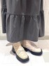 こひつじがちらり。シンプルコーデ 【トップス】 こひつじのデザインが印象的なニット。真ん中にデザインがあるのでキャミワンピやジャンスカを重ねて覗かせても可愛らしい◎袖と裾はきゅっとタイトになっていてバランスの良い1枚。 【ワンピース】 リボン部分で丈感を調節できるワンピースは小柄な方も安心です◎あまり甘すぎないデザインで、大人な雰囲気。日常のどんな場面にもマッチする万能キャミワンピースです。 【バッグ】 チャーミングなハートのバッグはコーデのアクセントに!可愛いだけでなく、マチもあり、しっかり荷物も入るので、おでかけにぴったり◎セットのコインケースが便利で嬉しい!中のポケットもハート型なのが、merry jennyのこだわり。 【シューズ】細身のロングブーツはごつさが少なく、ガーリーなお洋服とも相性抜群◎フリルベルトやハートのスタッズでさらに可愛らしさをプラス!ミニ丈のボトムはもちろん、ロングスカートを履いた時にも可愛いポイントが見えるのが◎