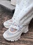 淡色パンツコーデ🤍 【トップス】 柔らかい生地感のブラウスはしわにもなりにくく、夏にぴったり!袖も少し長めで二の腕のカバーも◎襟のリボンが垂れて、キャミOPなどと重ねたときにキュートです♡ 【ベビードール】 トレンドのアイテムを日常使いしやすいデザインに落とし込んだ、NEWアイテムのベビードール!落ち着いた色展開と、透け感のある軽い素材で夏に重ね着しても重たく見えません◎ショートパンツと合わせてミニワンピっぽく着ても可愛いです! 【パンツ】 小花柄が可愛らしいパンツは、リボン柄のレースもプラスされてさらにガーリーな印象に。ストレートなシルエットでカジュアルさとのバランスも◎ 【シューズ】歩きやすさと可愛さがMIXされた最強スニーカー!シアーなお花柄のデザインと散りばめられたリボンでより可愛らしく♡厚底ソールですが想像以上に軽いので長距離のおでかけにぴったりです!24.5cmでLサイズですが少し余裕があるようなサイズ感です!かかとでサイズ調節ができるのが安心ポイント◎