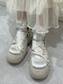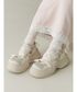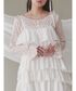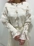 上品♩な柔らかアイボリーコーデ🍼 【トップス】 薄手のカットソーはレイヤードにぴったりのアイテム!派手すぎないお花柄が春っぽさを演出🌸してくれます。袖がフレアになっていて、手元まで可愛らしく。柔らかい生地感で着心地◎ 【カーディガン】 シャーリングのチュールとリボンでとびきりガーリーに!きゅっとした袖でメリハリのついたシルエットとのギャップが◎ 【ボトムス】 ふわっと可愛らしい印象になるチュールスカートにはさらにリボンをプラス。甘めな雰囲気ですが、あまり広がりすぎないシルエットなので普段使いもしやすいです。ウエストも総ゴムで窮屈感なく、楽に履いていただけます! 【シューズ】 バレエコアな見た目に、ボリュームのあるソールがマッチした、merryらしいシューズ!レースアップでサイズ感の調節可能◎見た目以上に軽く、長時間のおでかけにも重宝するシューズです。