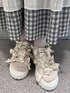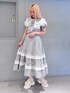 らくちんセットアップコーデ♩ 【トップス】 ギンガムチェックが夏らしい、ガーリーなブラウス。パフスリーブの形も可愛らしく、気になる二の腕をカバー。キャミワンピの中に合わせて着るのも◎ 【つけ襟】 ボリューミーなレースが重なったつけ襟。シンプルなコーデにプラスするだけで華やかに。腰に巻いてエプロンのようにすることも可能! 【ボトムス】 ギンガムチェックのガーリーさとトップスを選ばず履けるシンプルなシルエットが可愛らしいスカート。お揃いのトップスと合わせても◎お待ちのTシャツなどと合わせるだけでも、万能に使える1着です。 【シューズ】 リボンがふんだんに使われたサンダル。形はカジュアルな雰囲気ですが、サテンのリボンでガーリーデザインに。高さも低めでフラットなので歩きやすさ◎かかとの部分でサイズ調節ができるのも嬉しいポイント!
