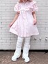【ワンピース】 シャツ生地が爽やかでカジュアルなミニワンピ。フリルがついてガーリー要素もありながらストライプ柄で甘くなりすぎず、デニムなどのパンツ合わせも◎一枚でも華やかに着ていただけます。 【パンツ】 レースのパンツはワンピースの下にレイヤードしたり、チュニックに合わせたりと、どんなコーデにも合わせやすくて◎裾にかけてゆるくフレアになっているので美脚効果も! 【シューズ】 フリルのついたスニーカーはガーリーなお洋服にも合わせやすい万能シューズ。形はスニーカーなので歩きやすさは満点。軽く、高さもあまりないので長時間のお出かけにも◎靴紐をシアーなリボンに変えることもできるのでさらにガーリーな印象にも♩
